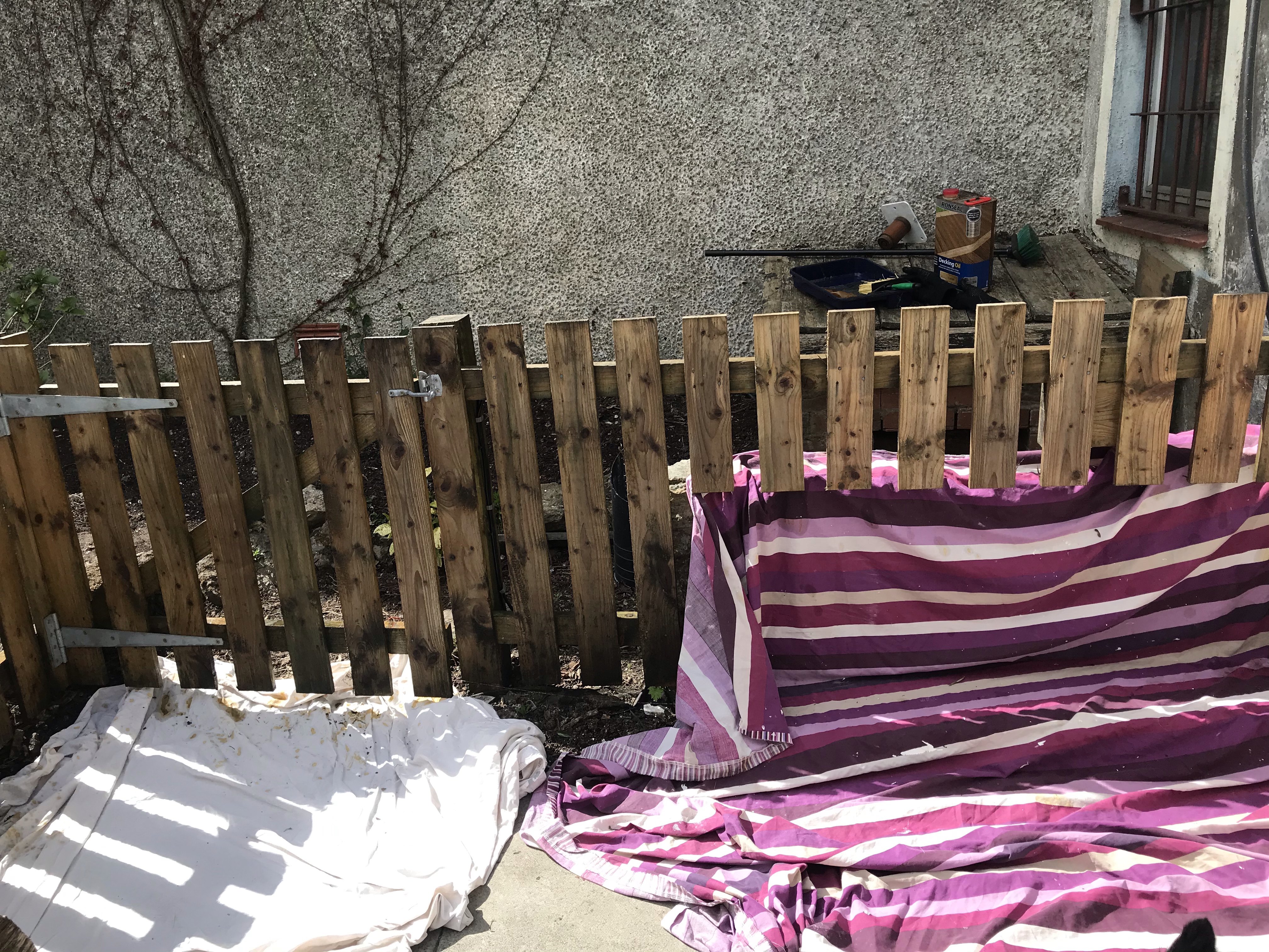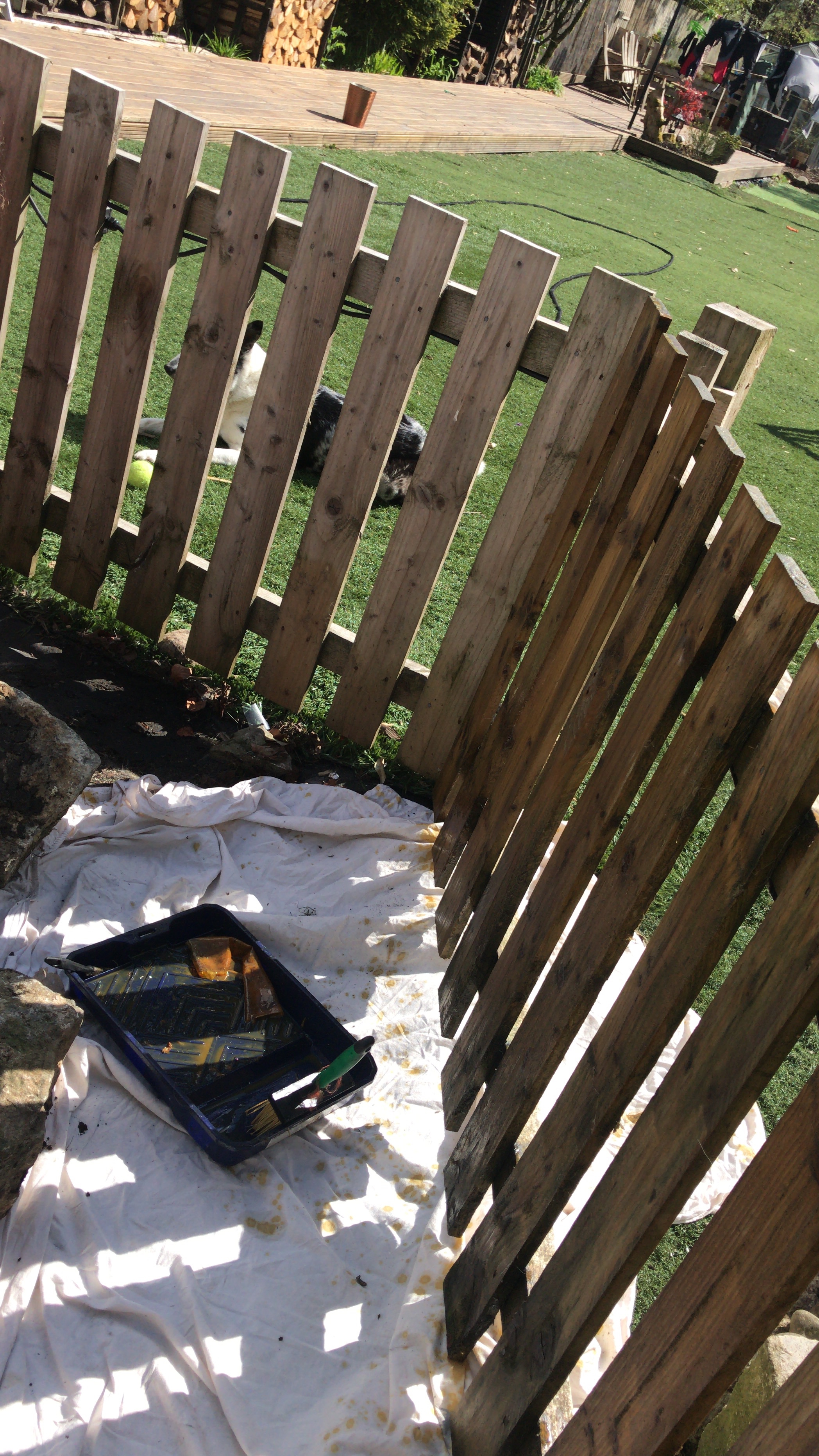 It clouded over pretty early today and was windy so felt a lot colder than the last few days so i thought I’d potter and start staining some of the fence as it’s been looking pretty dry. It’s one of those jobs that you start of like Picasso and end up splatting fence stain all over everything. Craig told me to start on the back of the fence to see what it looked like… he comes out to check progress and yep I’m on the front. Forgot that important fact so the whole fence needs to be done that colour. Which it was gonna be anyway s’pose.