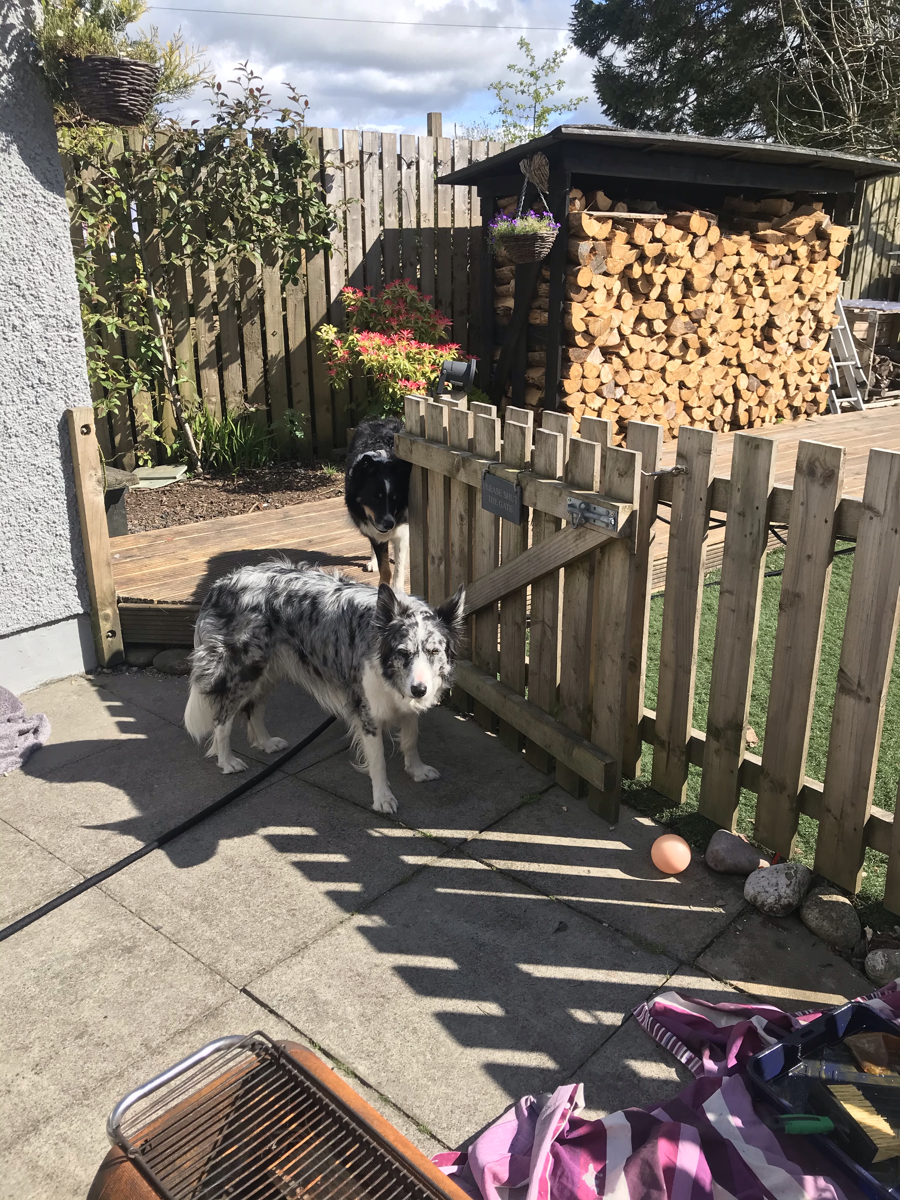 Out and ready for collection… thankfully didn’t seem to keep him waiting too long so all is good! Have to handball the shopping into the Jeep. Why? I didn’t get bags… that was way to much to do with everything else going on….. You get the gist??? I took hunners o’photies and the roads where pretty empty! Village life…. hand balled the shopping into the house… 🤷🏻♀️Bacon on the barby for breakfast! Thought I’d take a selfie with my new phone screen and my hair washed and down!! Sat in the sun having breakfast. After breakfast “we” tackled the bottom end of the garden! This is me tackling the garden…. need content for the blog?!! Looking no bad… except I apparently am responsible for the first sleeper against the fence being squint as he drilled it from the other side….. looked fine to me… 😬Hammock up just to check lol Craig chatting over the fence while I sit taking pics of the dogs following his every move! Had a wee visit from Nacho the cockapoo today! Toooooooo cute!!! 🥰Nacho and Leo the almost cockapoo twins! Nacho learning to walk! Nacho looking mean!!Freya being told to stay still for the photos but she just wants to play! BBQ dinner, steak for Craig and chicken kebabs for me. Still hot outside! Who expects to look after the furniture when there’s hosing going on outside!!! they were desperate to get out!