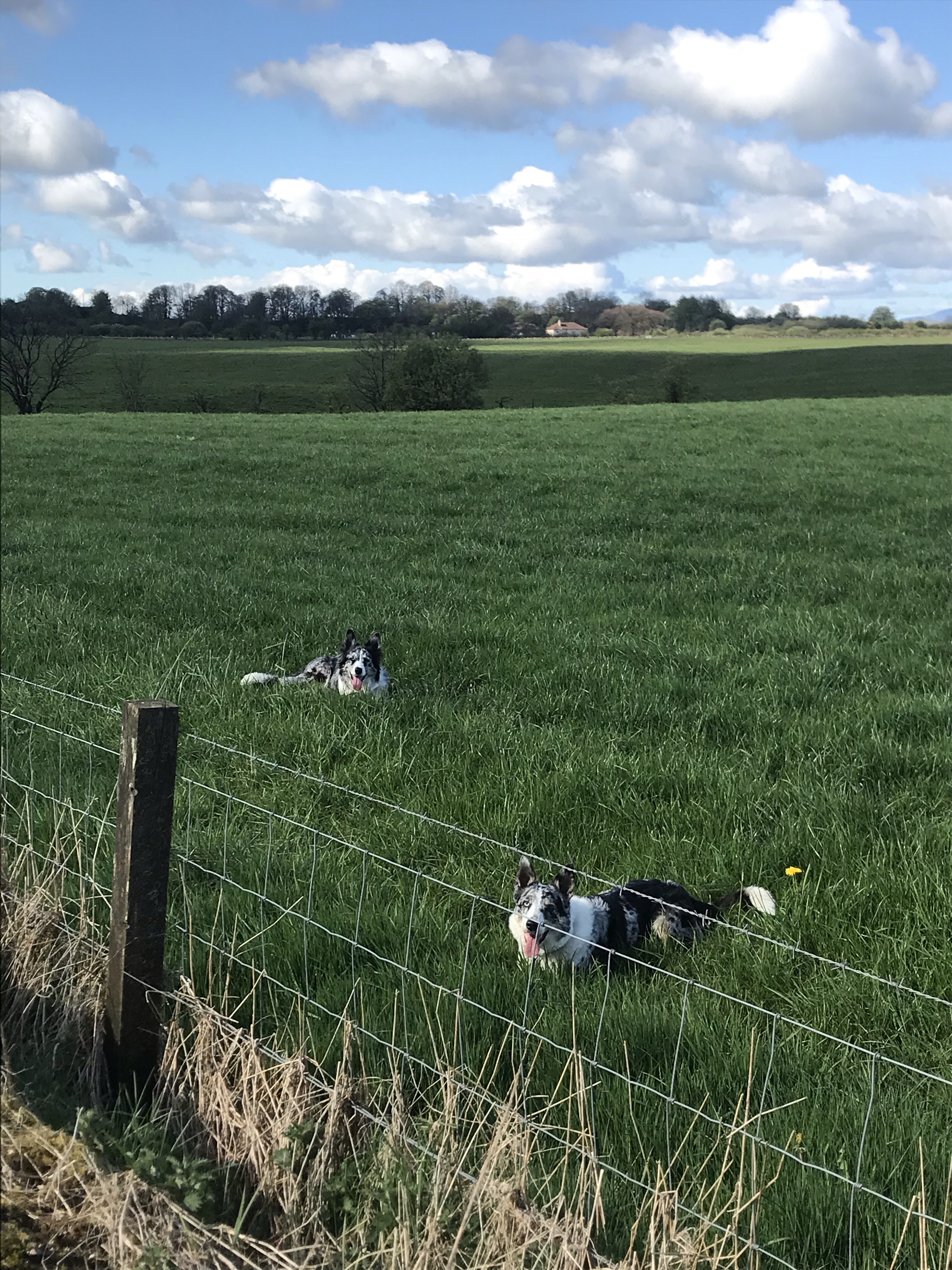 No show without Bhru… 🤣 (I have a crack in my phone screen which affects selfies!)Meant to say yesterday Craig was chopping wood when a bit hit his leg! Bhru keeps trying to lick it better 🥴 don’t worry he’s still walking tho lol His chopped wood! Looking good! Check my fence… awfy chuffed with it. Steps… need to get on it! Bhru and Freya My trees in the sunshine! It’s a beautiful day even though they’d said the weather would turn today. Expecting rain and 2pm but can’t see it… Off to play in the field for a bit! Off into the next field Off again on the plod.Think this might be the last of the sunny days for a bit so may have taken a few hundred extra pics 🤷🏻♀️Just stunningGotta love a tree! Next field! Finally zonked! This way guys Back on the road to home (don’t worry there’s more fields on the way!!)Love watching them do this before a big race! And they’re off!! Posing at my trees! The clouds just added to the photos today Gateside through the flowery gardenHeading back into Reek StreetWe packed the bedding into the tent just to get it out the house. Once we’re allowed back out we’ll be ready to camp! Man on JeepCheck the black cloud hanging over the Jeep! We got the shed re-roofed by the same roof guys. The roof will outlast us apparently Calaidh didn’t like the roof guys blow torch burner…. she kept hiding Out for a walk with Calaidh and the cloud kept growing! It’s about 4pmWe went to Speirs old school grounds The war memorial Calaidh leading the way, the grounds are beautiful in SpeirsBreaks my heart that they knocked this school down…. beautiful building and I have friends that went to school there. The driveway in front of the old schoolNext stop the Coronation GardenThe central feature of the garden is the Dawn Redwood, thought time exist only in fossil form. Living examples were found in China in 1941 and seeds brought to Scotland in 1947. It was planted in 1953 for the Queens Coronation and was hidden from view when the school was closed in 1972. It was found again and the garden cleared in 2013.Some of the lovely flowers in the gardenClever Calaidh Calaidh got a wee paddle on the way backWhat’s over here? Maybe the last of the daffies… only seems the two tone coloured ones leftCheck the clouds over Reek St.Main Road… check that gorgeous Beetle for sale, someone messaged and asked for price and mileage today so my homemade sign must have attracted their attention. He said he’ll send the info to his daughter.