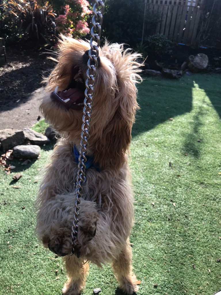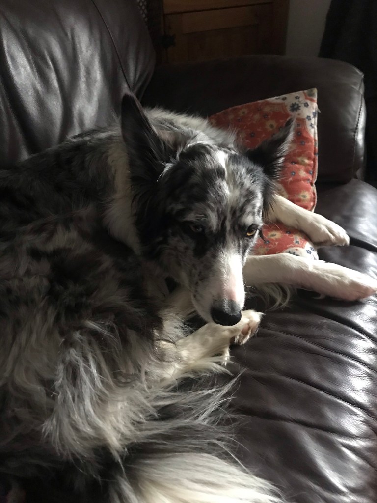 Poor Bhru isn’t feeling well this morning. The pups normally spill out from their room upstairs like bullets from a gun but Craig realised she hadn’t come down and went back up to get her. Wee soul.
