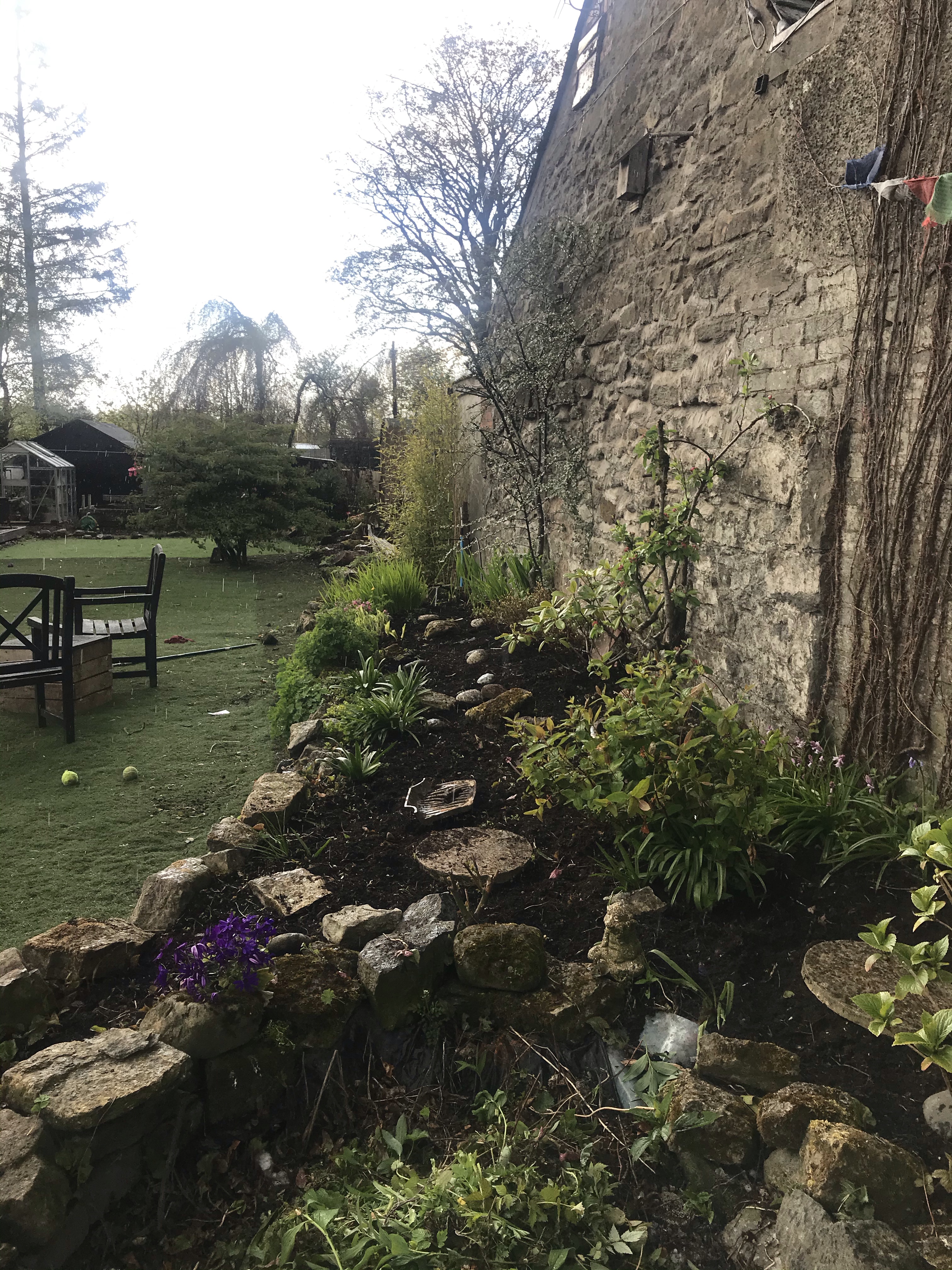Wearing black the sun was really hot as I weeded the rockery. The old pond is empty just now and used as an ash pit from the fires so ignore the mess in that!! I weeded it all and then sat and had a coffee in the hot sun.